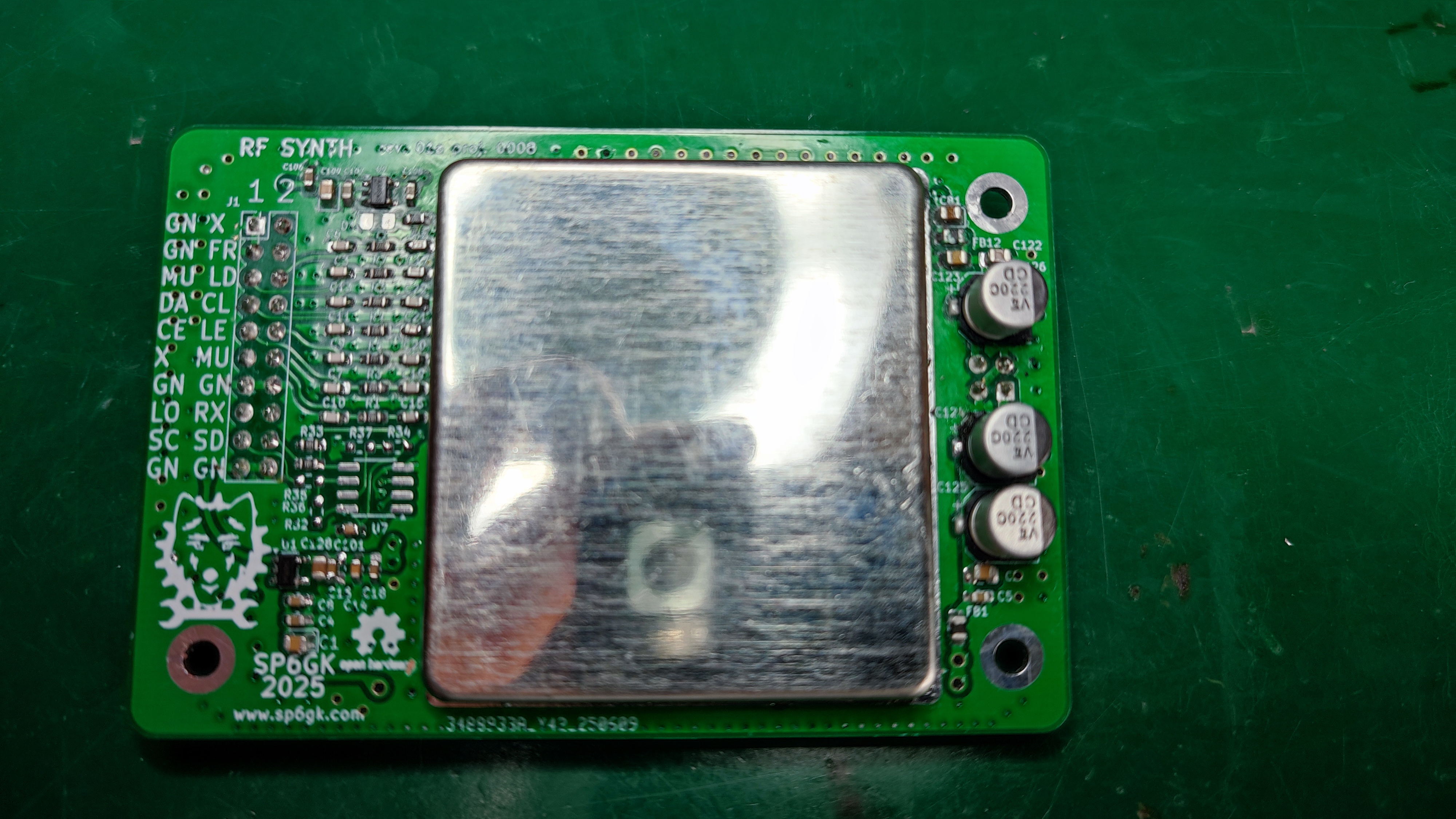 This board is pin and dimensions compatible with the presented here board. It uses PLL IC made by Texas Instruments which I found easier to program, it offers cleaner output with power high enough direct output power to drive most of the mixers. Learned from experience, this board does not include RF filters to produce a sinewave since mixers work better with lower level square wave LO (src).